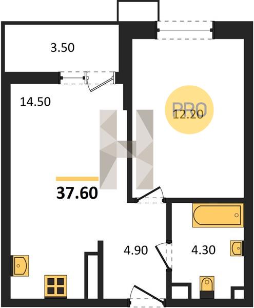 1-комн. квартира 37.60 м² в ЖК «Звезды»