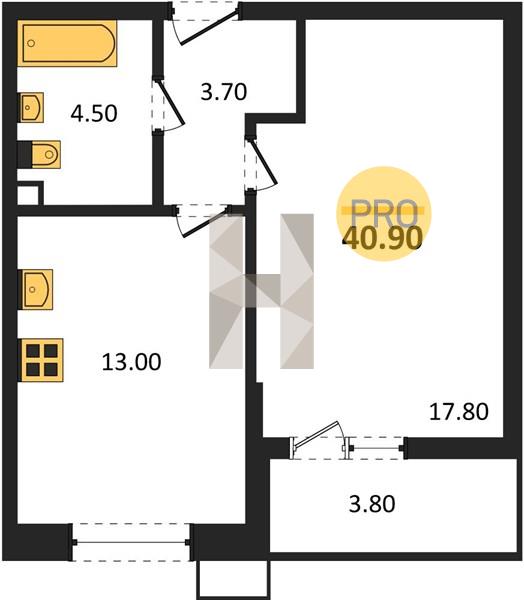 1-комн. квартира 40.90 м² в ЖК «Звезды»