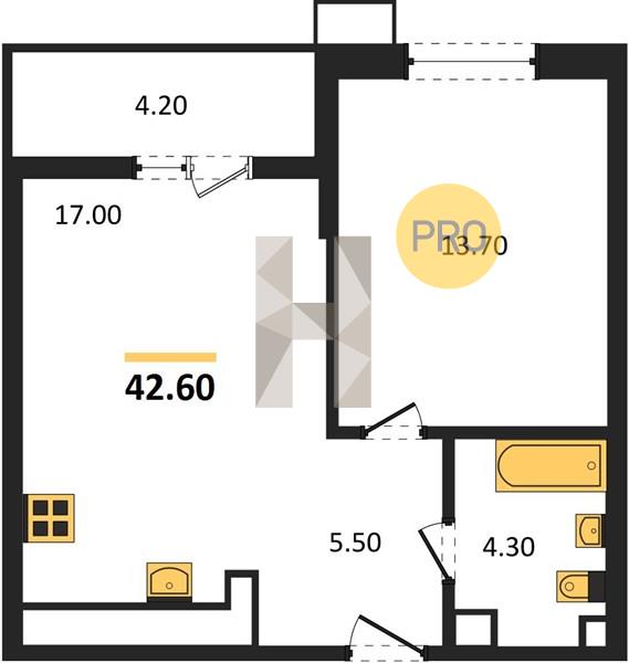 1-комн. квартира 42.60 м² в ЖК «Звезды»