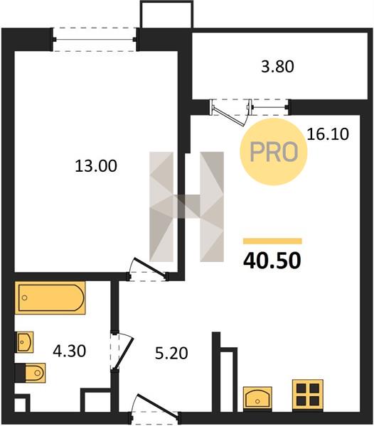 1-комн. 40.50 м²