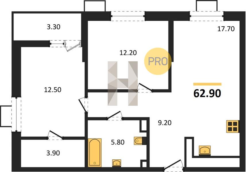 2-комн. квартира 62.90 м² в ЖК «Звезды»