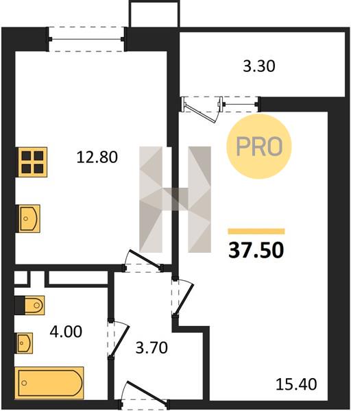 1-комн. квартира 37.50 м² в ЖК «Звезды»