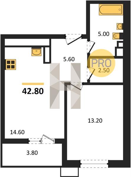 1-комн. 42.80 м²