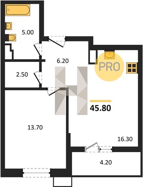 1-комн. квартира 45.80 м² в ЖК «Звезды»