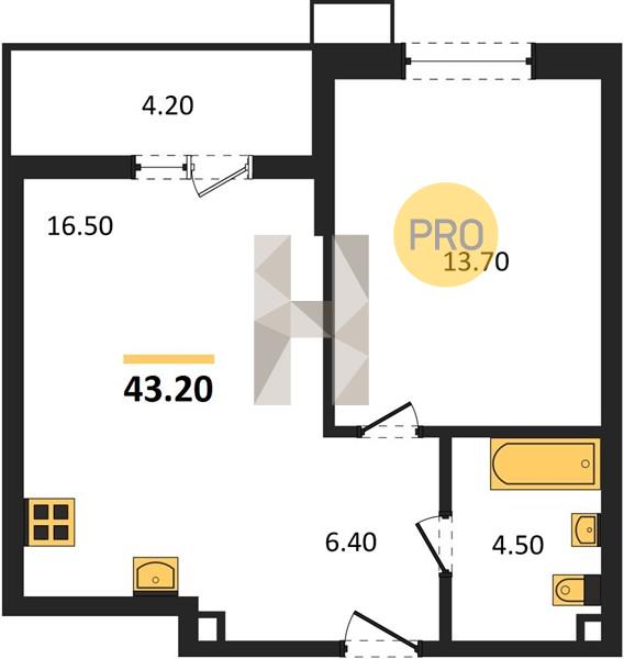 1-комн. квартира 43.20 м² в ЖК «Звезды»