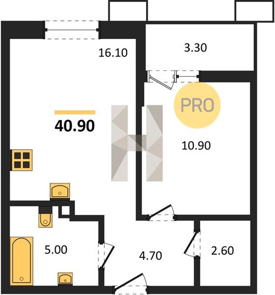 1-комн. 40.90 м²