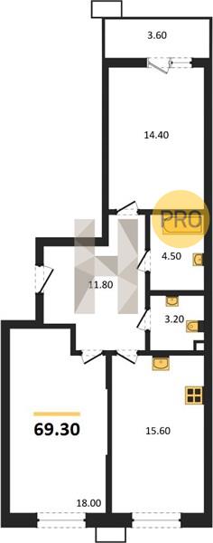 2-комн. 69.30 м²