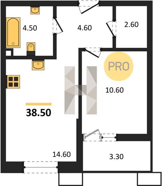 1-комн. квартира 38.50 м² в ЖК «Звезды»