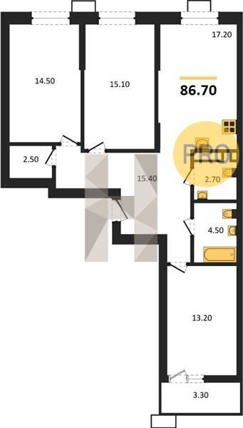 3-комн. квартира 86.70 м² в ЖК «Звезды»