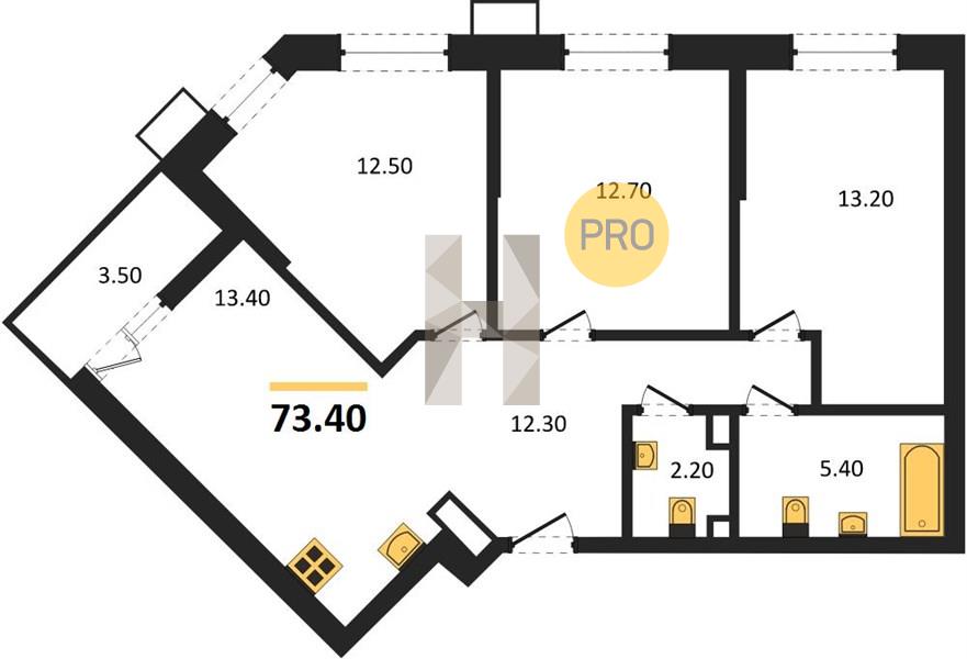 3-комн. квартира 73.40 м² в ЖК «Звезды»