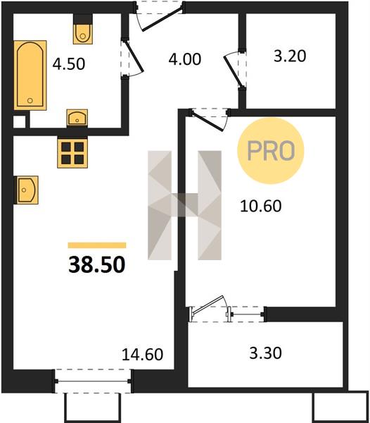 1-комн. квартира 38.50 м² в ЖК «Звезды»