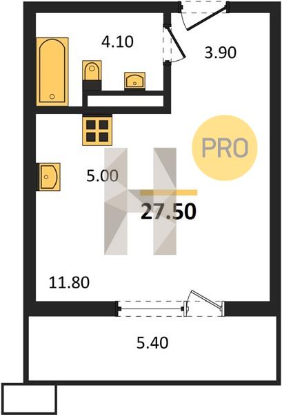 0-комн. квартира 27.50 м² в ЖК «Звезды»