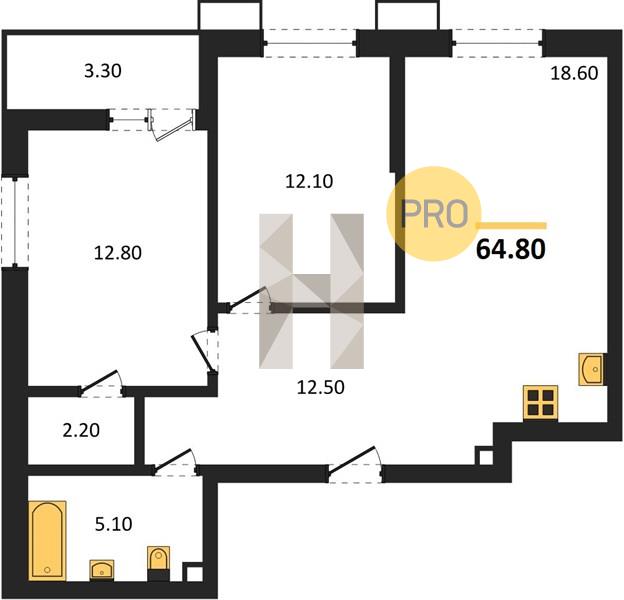 2-комн. квартира 64.80 м² в ЖК «Звезды»