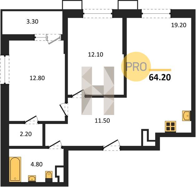 2-комн. квартира 64.20 м² в ЖК «Звезды»