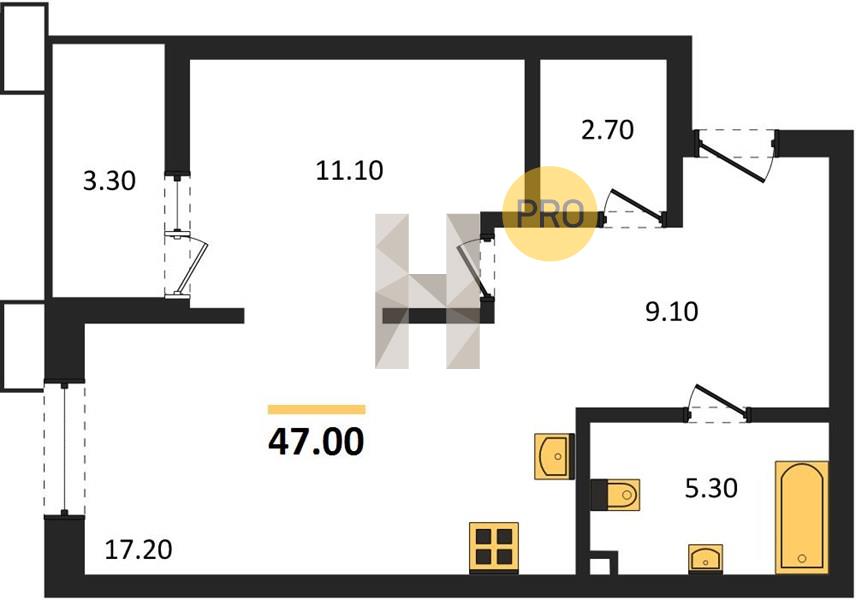 1-комн. квартира 47.00 м² в ЖК «Звезды»