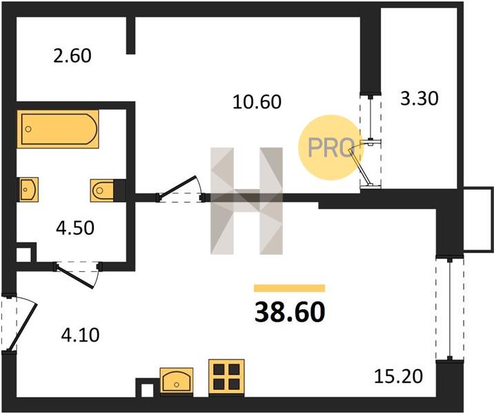 1-комн. 38.60 м²