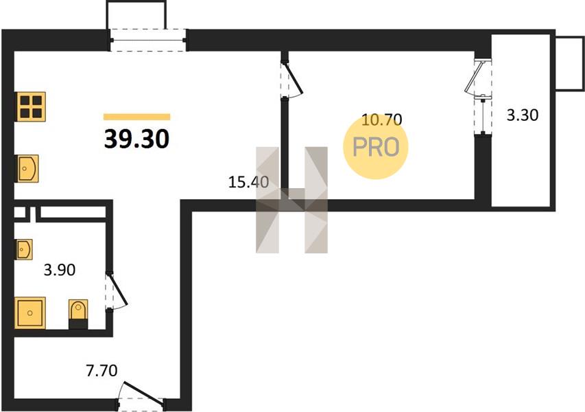 1-комн. квартира 39.30 м² в ЖК «Звезды»