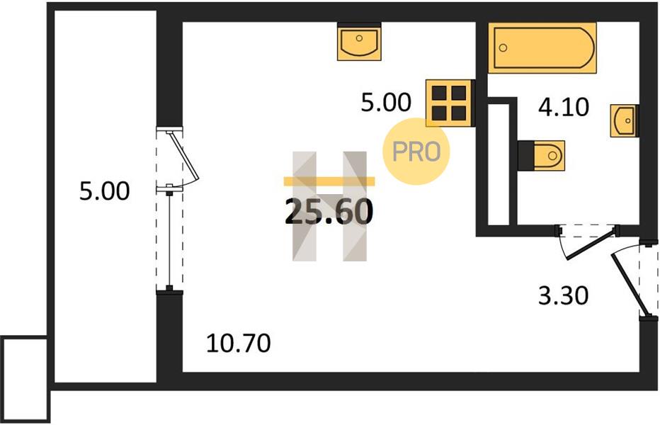 0-комн. 25.60 м²
