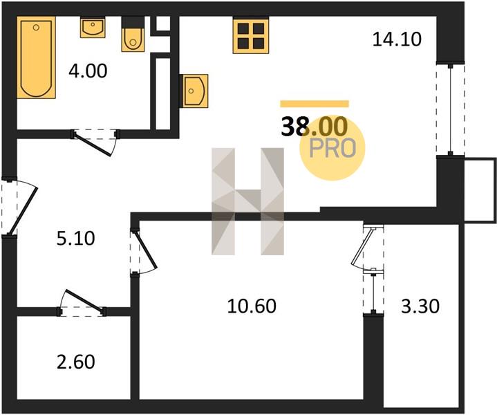 1-комн. квартира 38.00 м² в ЖК «Звезды»