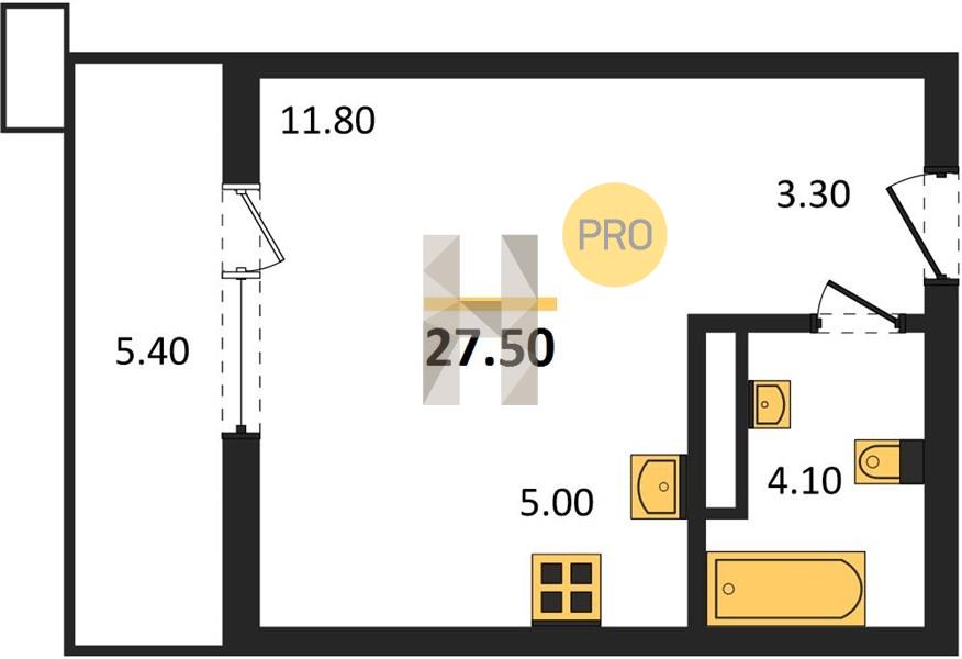 0-комн. квартира 27.50 м² в ЖК «Звезды»