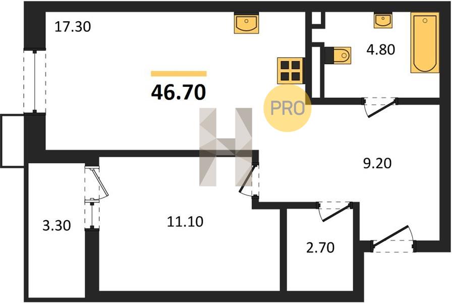 1-комн. квартира 46.70 м² в ЖК «Звезды»