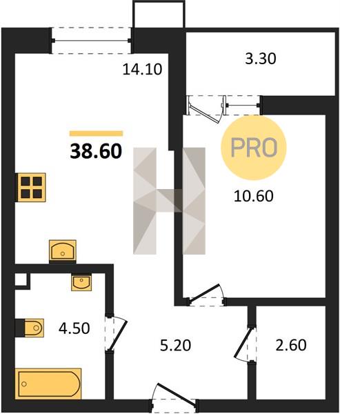 1-комн. квартира 38.60 м² в ЖК «Звезды»
