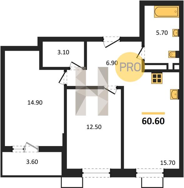 2-комн. 60.60 м²