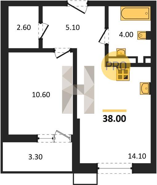 1-комн. квартира 38.00 м² в ЖК «Звезды»