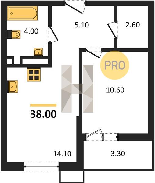1-комн. квартира 38.00 м² в ЖК «Звезды»