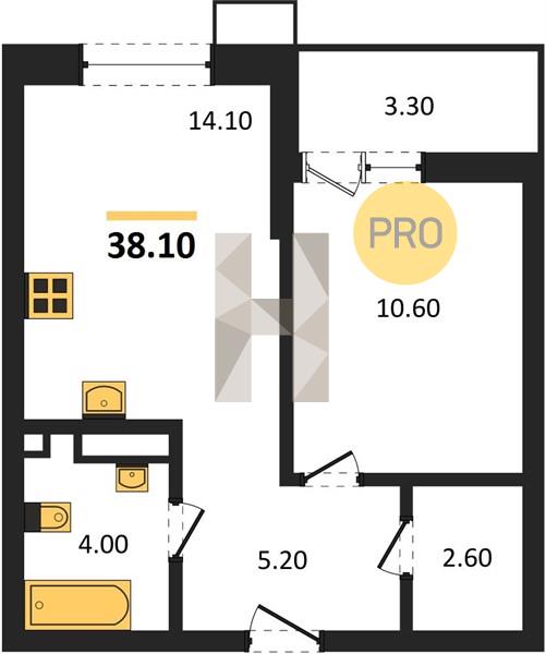 1-комн. 38.10 м²
