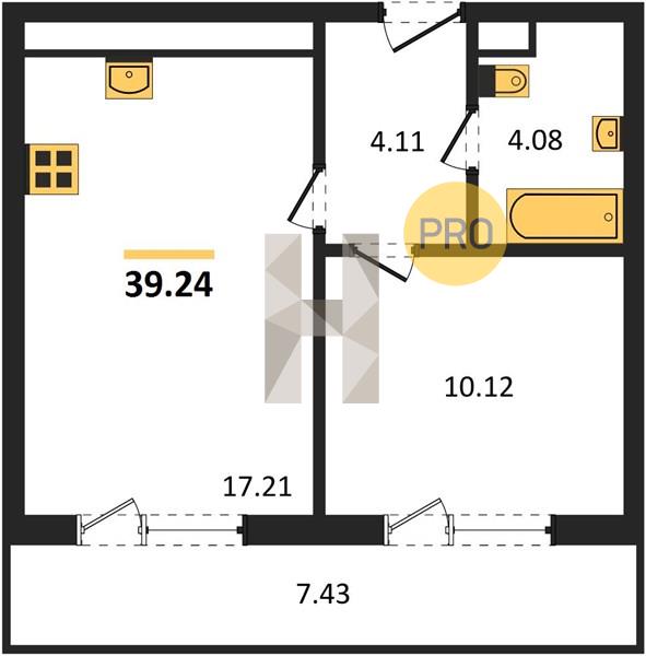 1-комн. квартира 39.15 м² в ЖК «Теплые Края»