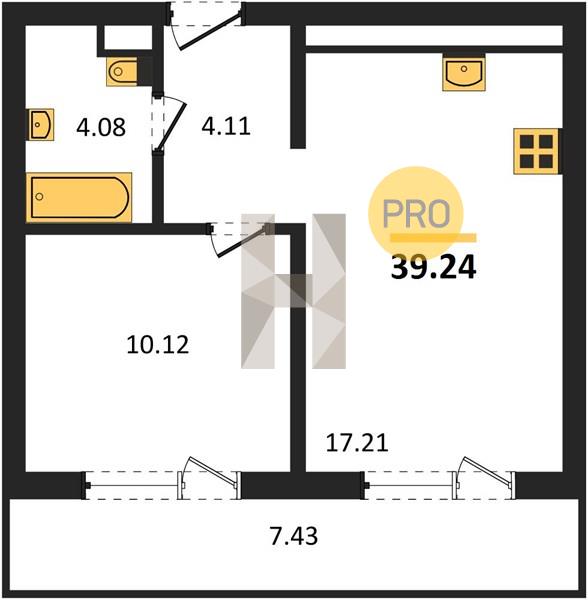 1-комн. квартира 39.40 м² в ЖК «Теплые Края»