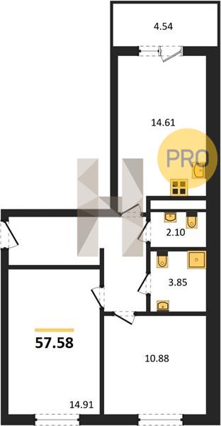 2-комн. квартира 57.46 м² в ЖК «Теплые Края»