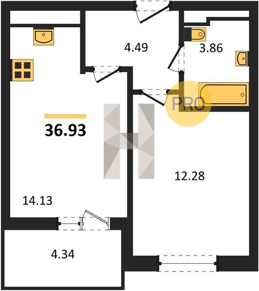 1-комн. квартира 36.95 м² в ЖК «Теплые Края»