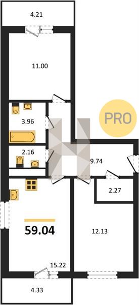 2-комн. квартира 59.08 м² в ЖК «Теплые Края»