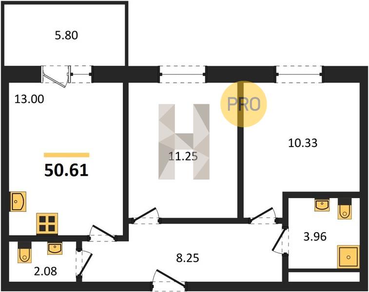 2-комн. квартира 49.71 м² в ЖК «Теплые Края»