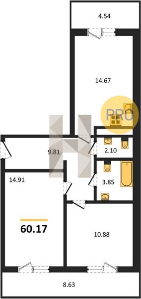 2-комн. квартира 60.12 м² в ЖК «Теплые Края»