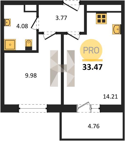 1-комн. 33.51 м²