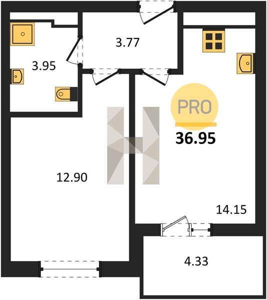 1-комн. квартира 36.65 м² в ЖК «Теплые Края»