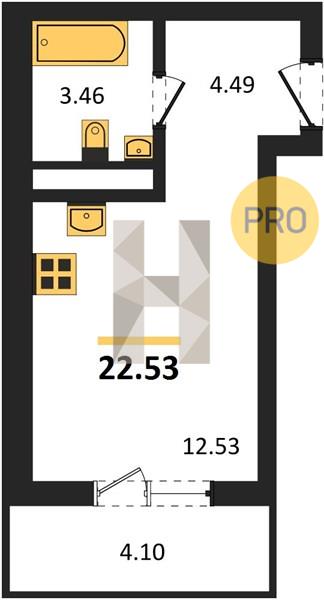 1-комн. квартира 22.65 м² в ЖК «Теплые Края»