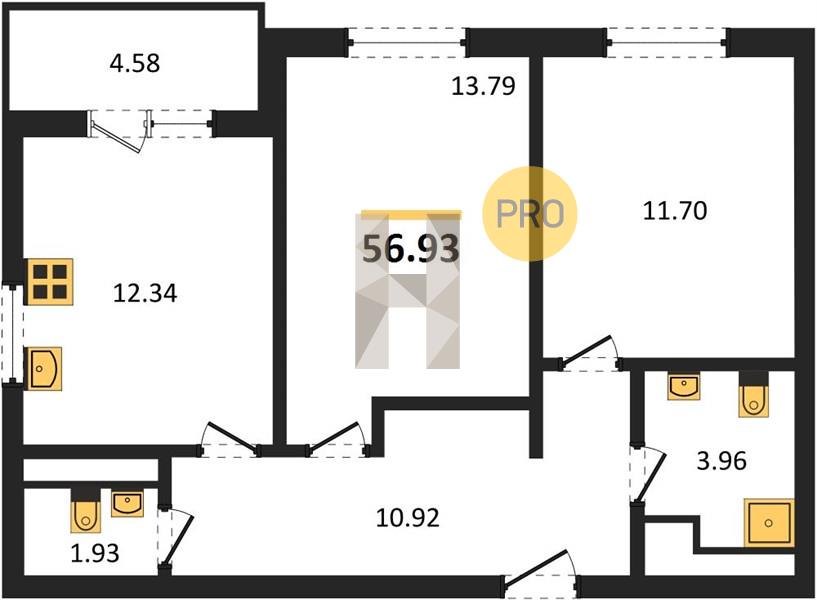 2-комн. квартира 56.55 м² в ЖК «Теплые Края»