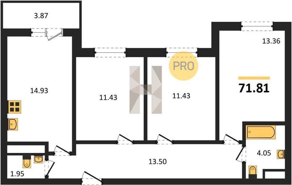 3-комн. квартира 71.33 м² в ЖК «Теплые Края»