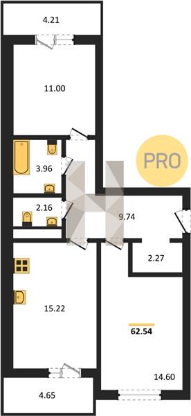 2-комн. квартира 62.51 м² в ЖК «Теплые Края»