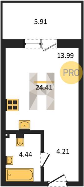 0-комн. 24.43 м²