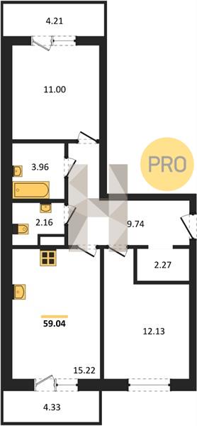 2-комн. квартира 58.75 м² в ЖК «Теплые Края»