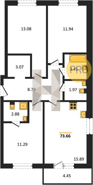 3-комн. квартира 72.65 м² в ЖК «Теплые Края»