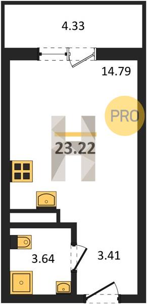 0-комн. квартира 23.22 м² в ЖК «Теплые Края»