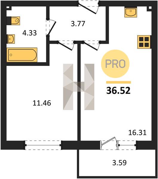 1-комн. квартира 36.52 м² в ЖК «Теплые Края»