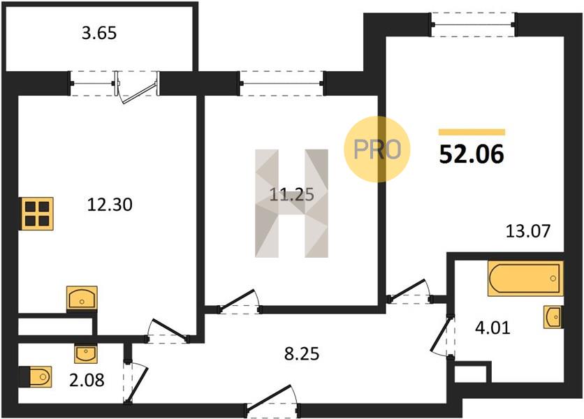 2-комн. квартира 51.84 м² в ЖК «Теплые Края»