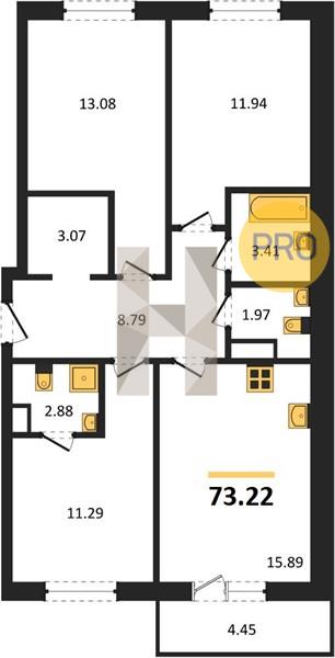 3-комн. квартира 73.22 м² в ЖК «Теплые Края»